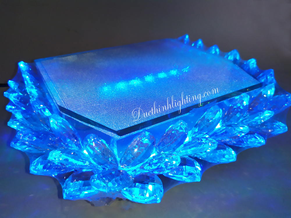 Đài Sen Pha Lê LED Đổi Màu 16x18 được làm từ kính, kết hợp với những hạt pha lê, ánh sáng đổi màu, mục đích để Phật ngồi khi bật đèn nhìn rất huyền ảo và cực đẹp.