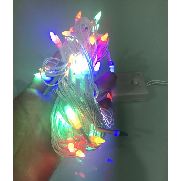 - Quy cách: dây dài 5m, 40 bóng led hình kim cương nhọn. Dây nối có màu trắng đục.