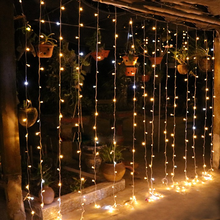 Sự kết hợp những chiếc đèn led cùng màu sắc và kích cỡ. Bạn có thể dùng chúng thả tự do từ phía cành cây xuống để tạo nên khung cảnh lãng mạn. Cộng với chút ánh sáng dịu dàng sẽ tạo nên diện tích xanh tươi của cây cỏ cây lá thơ mộng.