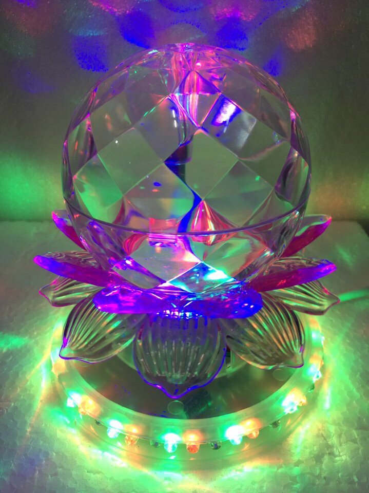 Đèn led hoa sen kết hợp cầu xoay nhiều màu sắc, Chỉ cần bạn cắm điện vào ánh sáng xoay tròn với nhiều màu sắc khác nhau phủ khắp phòng, đèn chớp tắt sáng và đổi màu liên tục, khiến bạn không khỏi ngạc nhiên. Với kiểu dáng nhỏ gọn cầu sen dĩa Led kết hợp đĩa xoay nhiều màu sắc bạn có thể đặt bất kỳ nơi nào mà ban muốn. Đèn led cầu xoay loại đèn trang trí thông dụng dành cho các quán karaoke gia đình, phòng trà ca nhạc, phòng nghe nhìn gia đình.