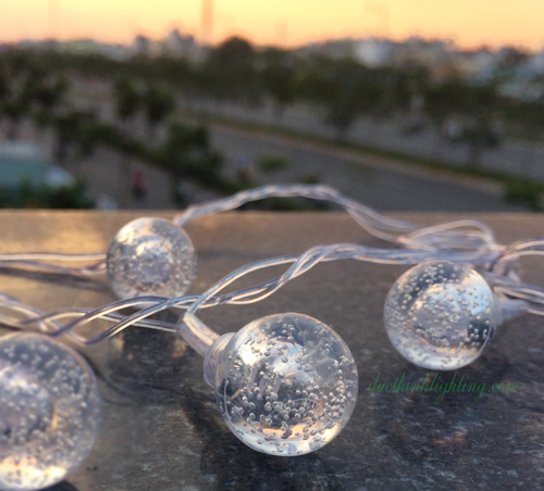 Dây Đèn LED Bi Trong Suốt 18 Bóng sử dụng thiết kế đơn giản nhưng mang tính nghệ thuật cao với hình dáng viên bi màu nước trong mang đến vẻ đẹp nhẹ nhàng như những giọt nước ánh sáng led làm cho đèn càng lung linh huyền ảo cùng thiết kế đơn giản dễ kết hợp và sử dụng ở nhiều không gian khác nhau.