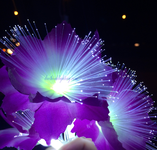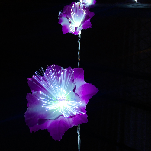 Những bông hoa của dây đèn led hoa được làm bằng chất liệu vải với bóng đèn led siêu sáng cùng những sợi quang học giúp hoa thẩm mỹ hơn.