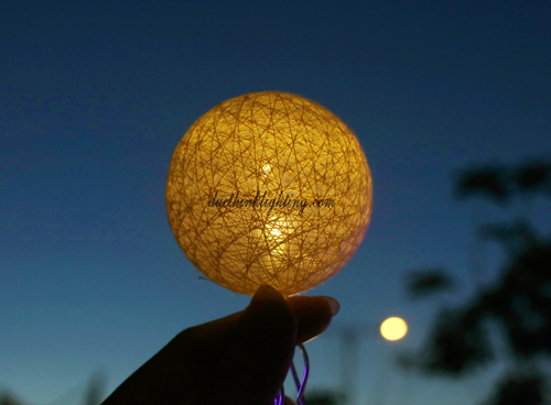 - Phía ngoài bóng được đan 1 lớp chỉ cotton bao quanh cho hình ảnh thực tế như quả cầu mây.