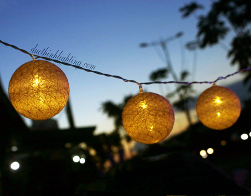 - Dây đèn trái châu cotton sử dụng trang trí nội ngoài thất mang lại vẻ đẹp cho không gian trang trí.