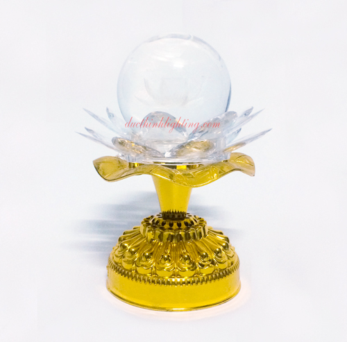 Đèn cầu pha lê led bao gồm nhiều màu sắc sặc sỡ với cơ chế sáng đổi màu liên tục. Ngoài ra đèn cầu pha lê led còn có chức năng khác đó chính là phát nhạc phật với nhiều bài khác nhau và có thể mở hoặc tắt tùy ý. Đèn cầu pha lê led thường được sử dụng trong việc trang trí bàn thờ, hay phòng thờ,....