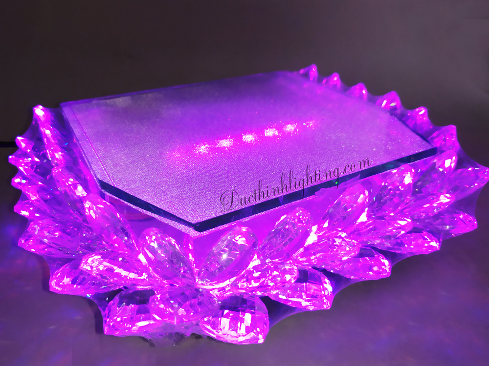 Đài Sen Pha Lê LED Đổi Màu 16x18 được làm từ kính, kết hợp với những hạt pha lê, cánh sen cộng với anh sáng đổi màu chủ yếu được làm bằng thủ công mục đích để Phật ngồi khi bật đèn nhìn rất huyền ảo và cực đẹp. Hiện sản phẩm đang được Đức Thịnh Lighting cung cấp với giá thành tốt và chất lượng đạt tiêu chuẩn.
