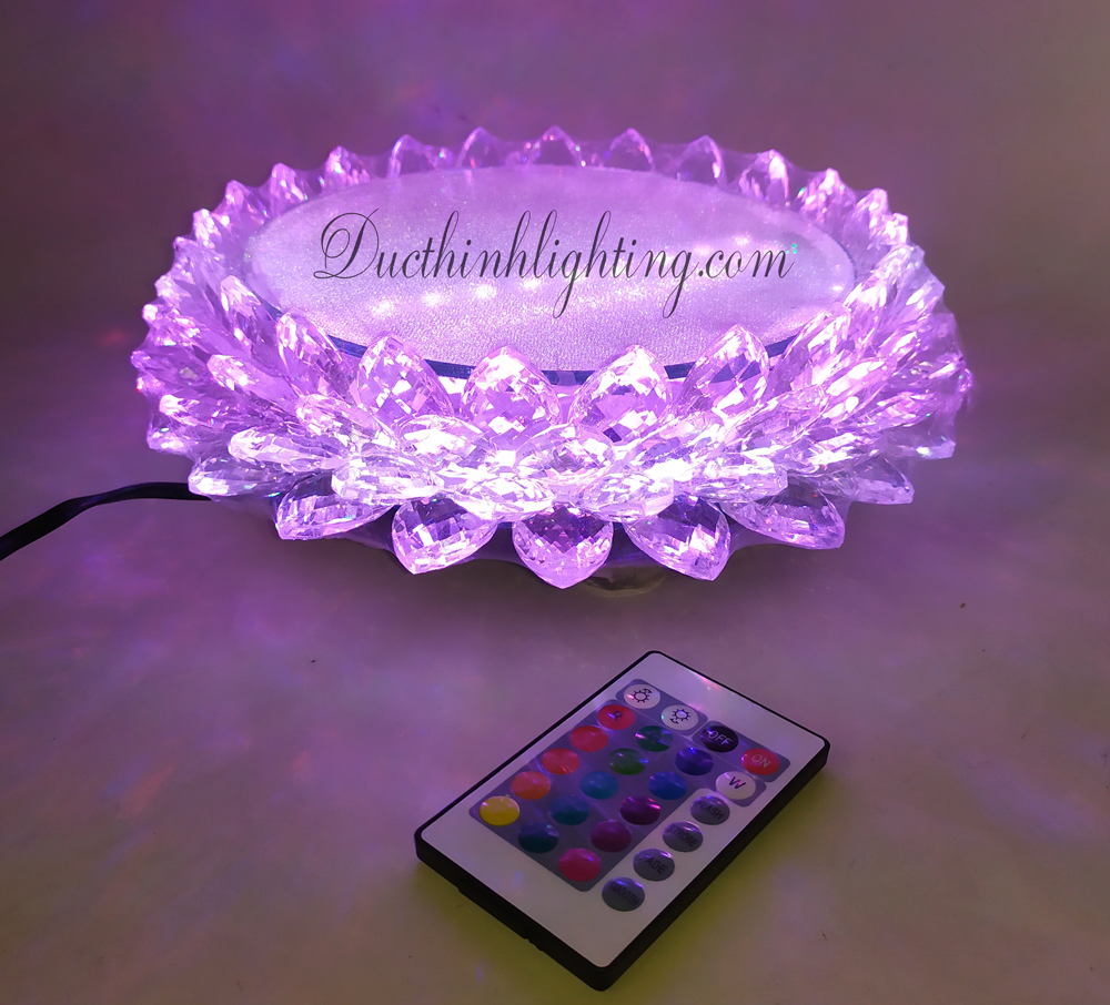 Đài Sen Pha Lê LED Đổi Màu Φ18 với kiểu dáng tròn hiện đại kết hợp với ánh sáng đèn Led lung linh diệu nhẹ đem đến cảm giác sang trọng, thẩm mỹ nhưng cũng không kém phần trang trọng, thành kính khi đặt trên bàn thờ tổ tiên.