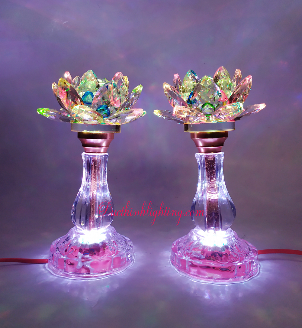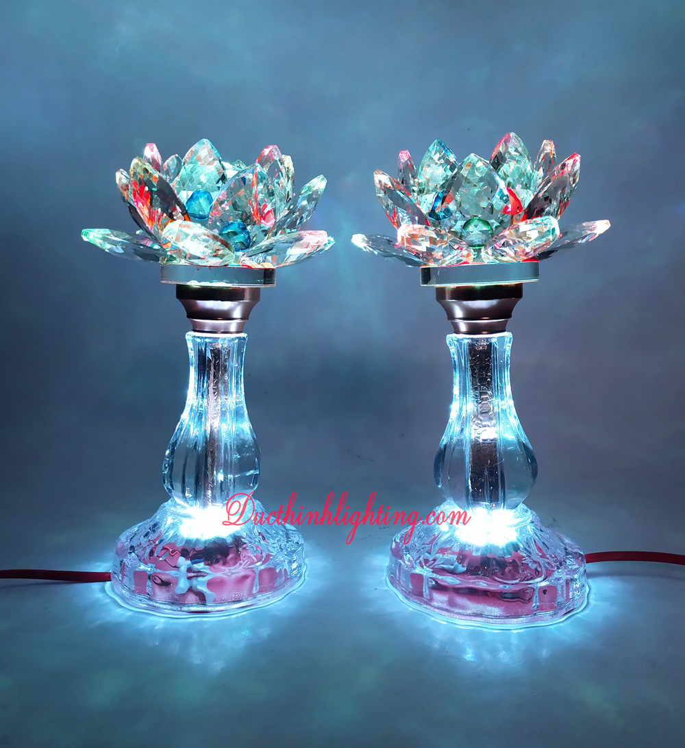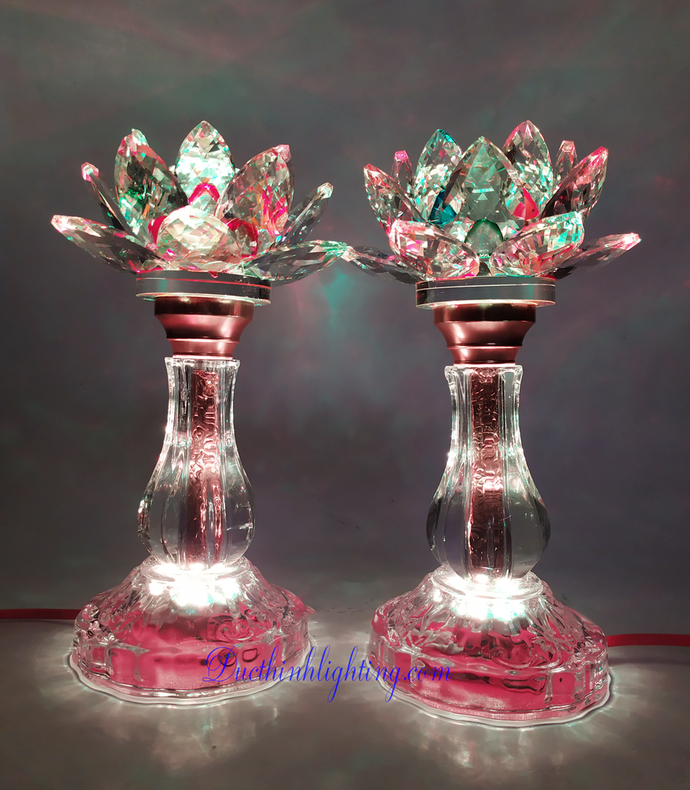 Mẫu đèn sen pha lê LED 2381 đổi màu được các khách hàng của Đức Thịnh Light trang trí trên bàn thờ Phật hoặc Gia Tiên, và các vị Thần thánh,… Ngoài ra, chúng tôi còn đang cung cấp rất nhiều mẫu đèn trang trí bàn thờ các loại khác.