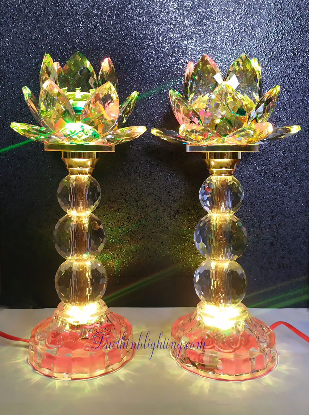 Đèn sen pha lê LED 3 bi đổi màu thường dùng để thắp sáng trong ngày mồng 1, ngày rằm, lễ tết hay những ngày thờ cúng...được đặt ở 2 bên bàn thờ tạo sự sang trọng, lung linh huyền ảo và uy nghiêm cho bàn thờ. Đức Thịnh Lighting hiện đang cung cấp nhiều mẫu đèn thờ cúng với nhiều kích cỡ. Quý khách vui lòng gọi hoặc đến trực tiếp cửa hàng, để được sự tư vấn chuyên nghiệp của nhân viên chúng tôi.