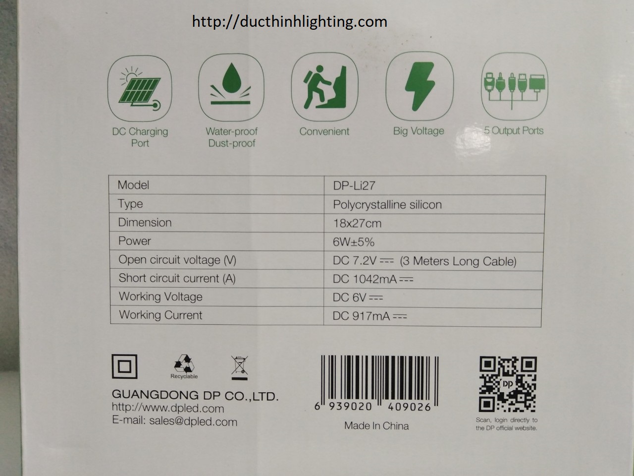 Miếng pin sạc năng lượng mặt trời DP-Li127